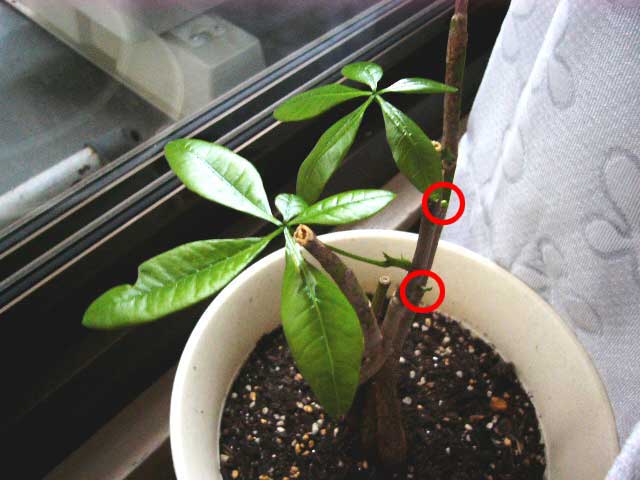 Tags: パキラ, 新芽, 観葉植物